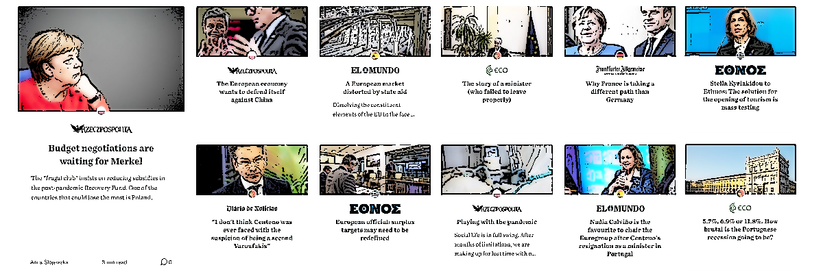 Forum.EU is net live gegaan in bèta. Forum vertaalt Europees nieuws van gezaghebbende journalistieke bronnen en brengt het samen op één plek. Hier kun dus je lezen wat er in Portugal geschreven wordt over Dijsselbloem bijvoorbeeld. In het Engels. Nu al in de bèta: El Mundo, de Frankfurter Allgemeine, Ethonos, Rzeczpospolita, en Diario de Noticias. Verzameld op interessante onderwerpen zoals Illiberalism, Kremlinology, China’s Century, Reopening Tourism etc. Dit is een mooi initiatief om te komen tot een Europese dialoog. Gaat dat zien. LINK.