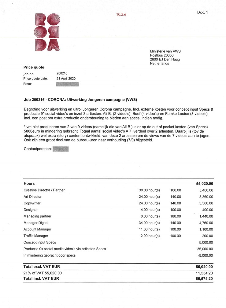 Er was een hoop te doen deze week over de via een WOB verzoek van RTL uitgelekte factuur van Roorda Reclamebureau aan de overheid voor de influencer campagne tegen Corona: