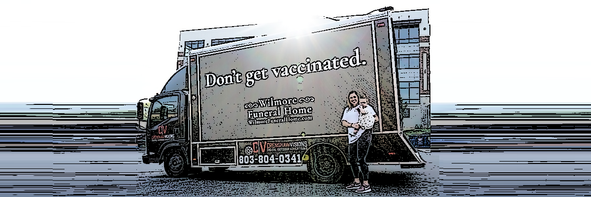 Reclamebureau BooneOakley verzon “Wilmore Funeral Home” om bezoekers te confronteren met het mogelijke ultieme gevolg van niet-vaccineren. De advertentie verwijst naar wilmorefuneralhome.com, een site die bezoekers twee opties biedt: “Laat je vaccineren”, met een link naar de site van de kliniek, of eenvoudigweg de optie “See you soon”…